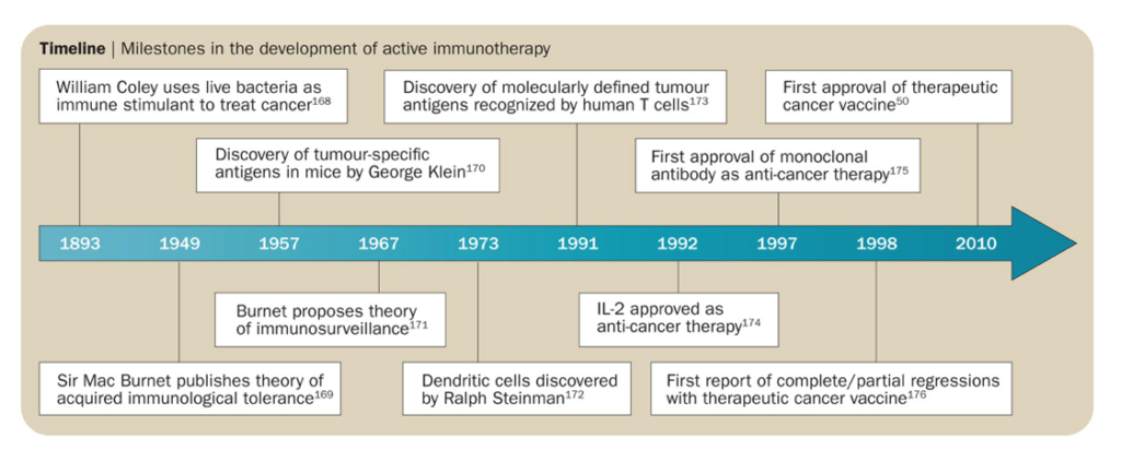 Timeline – Milestones in the development of active immunotherapy